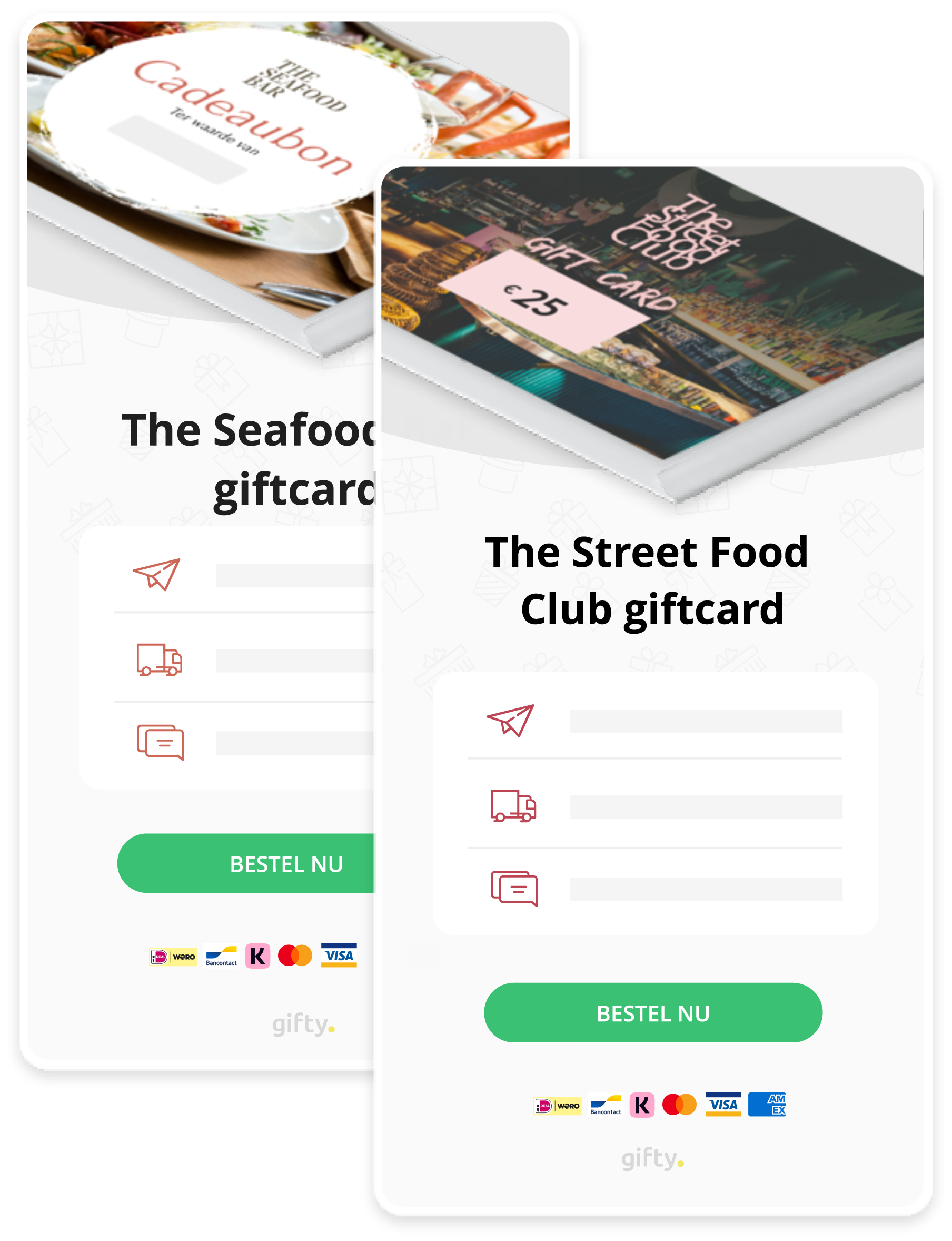Met fysieke cadeaubonnen kunnen gasten niet alleen in je restaurant betalen. De kaart kan ook worden verzilverd in jullie webshop, bij het bestellen van een heerlijke maaltijd uit jullie keuken. Andersom kan ook: met jullie digitale kaart kan een gast gewoon afrekenen in jullie restaurant. Fijn hoor, die slimme Gifty tools.